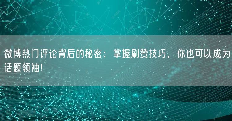 总之,要想成为微博热门评论的制造者,掌握刷赞技巧并付出努力是关键。通过了解热门评论的特点、掌握刷赞技巧、持续输出优质内容并建立个人品牌,你也可以成为话题领袖!