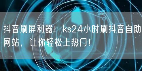 你是否也被抖音深深吸引,每天沉迷于刷屏无法自拔?你是否也梦想着成为抖音热门达人,让自己的视频迅速走红?现在,我们为你推荐一个神器——ks24小时刷抖音自助网站,让你轻松上热门!