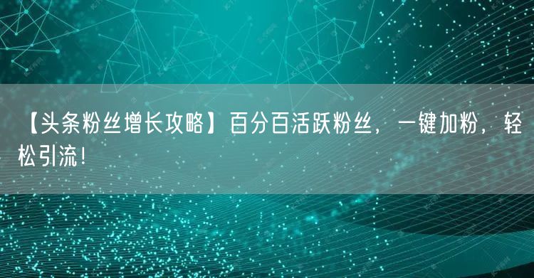 通过以上介绍的头条粉丝增长攻略,相信你已经掌握了吸引百分百活跃粉丝、一键加粉、轻松引流的方法和技巧。在社交媒体营销的过程中,不断尝试、总结、优化策略,相信你的头条粉丝数量会不断增长!