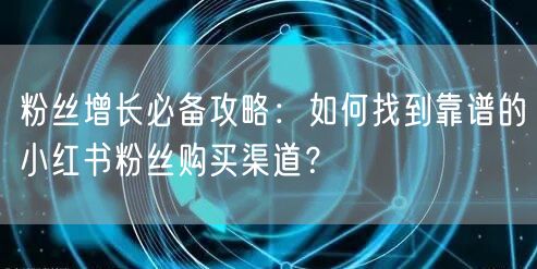在社交媒体时代,拥有一定的粉丝基数对于个人品牌推广、产品销售等方面至关重要。小红书作为一个流行的社交平台,吸引了众多用户聚集于此。如何有效地增加小红书的粉丝数量,成为许多用户关注的焦点。本文将分享一些实用的攻略,帮助大家找到靠谱的小红书粉丝购买渠道。